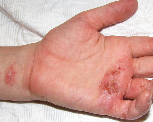 Some of the recommended treatment options for eczema on hands are allergy medications and antihistamines. Symptoms such as inflammation, itching and swelling mainly result from allergic reactions, thus the use of these medications eliminates the symptoms. Other forms of eczema treatment are emollients and topical creams, which help to sooth the hands. Petroleum jelly is an example of an emollient, which manages some symptoms of eczema such cracking and dryness.